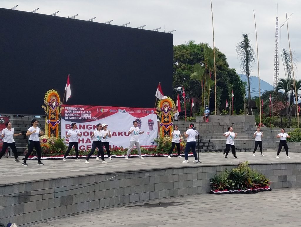 Jumat 18 Nopember 2022 Rumah Sakit Jiwa Provinsi Bali ikut serta dalam memeriahkan kegiatan Hari Kesehatan Nasional (HKN) yang ke 58 yg diselenggarakan oleh Dinas Kesehatan Kabupaten Bangli di Alun alun Kota Bangli. Hadir dalam kegiatan tersebut Wakil Bupati Bangli, Direktur Rumah Sakit Jiwa Provinsi Bali dan Staf, Kepala Dinas Kesehatan Kab. Bangli dan Staf, beserta undangan lainnya, yang turut serta melaksanakan senam bersama dengan semangat dan penuh suka cita. Dalam sambutan pembukaannya ,Wakil Bupati menyampaikan agar kegiatan senam bisa terus dilaksnakan secara berkelanjutan agar menjadi suatu kebiasaan menerapkan pola hidup sehat dan mengispirasi masyarakat turut serta melaksanakan olahraga secara rutin.