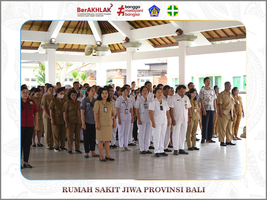 Senin, 1 Juli 2024 bertempat di Wantilan Rumah Sakit Jiwa Provinsi Bali telah dilaksanakan apel pekan disiplin. Pembina apel pada hari ini Direktur Rumah Sakit Jiwa Provinsi Bali, dr. Ni Wayan Murdani, M.A.P yang diikuti oleh seluruh civitas hospitalia dan mahasiswa yang melaksanakan pendidikan di Rumah Sakit Jiwa Provinsi Bali. Adapun beberapa pengarahan yang disampaikan pada apel pekan disiplin ini terkait rencana kunjungan evaluasi dari Tim BPJS dan mengenai core value pegawai, serta mahasiswa yang mengikuti pendidikan agar melaksanakan tugas dengan baik, bertanggung jawab dan mengikuti peraturan yang berlaku di Rumah Sakit Jiwa Provinsi Bali.