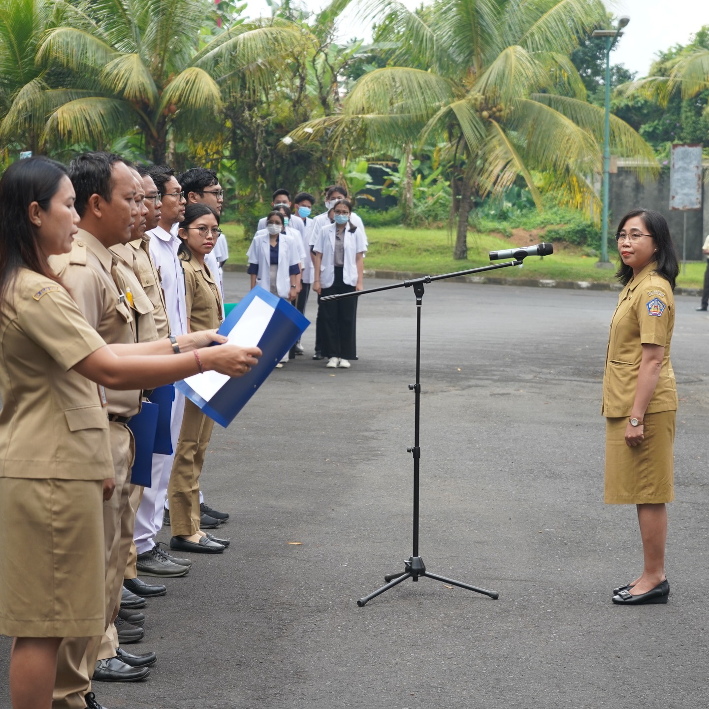 Senin, 5 Mei 2025 telah dilaksanakan apel pekan disiplin yang bertempat di halaman Rumah Sakit Manah Shanti Mahottama. Apel hari ini dipimpin oleh Direktur Rumah Sakit Jiwa Provinsi Bali dr. Ni Wayan Murdani, M.A.P dan diikuti oleh seluruh Civitas Hospitalia serta mahasiswa yang sedang mengikuti pendidikan di Rumah Sakit Manah Shanti Mahottama. Beberapa pengarahan yang disampaikan pada apel hari ini yaitu mengenai Kedisiplinan kepada seluruh pegawai ASN dan Non ASN terkait absensi dan kehadiran saat apel, dan pengenalan anggota Agen Perubahan Rumah Sakit Manah Shanti Mahottama Tahun 2025. Diharapkan dengan terbentuknya para agen perubahan dapat memberikan perubahan kepada rumah sakit untuk menjadi lebih baik dan menjadi role model kepada seluruh civitas hospitalia.