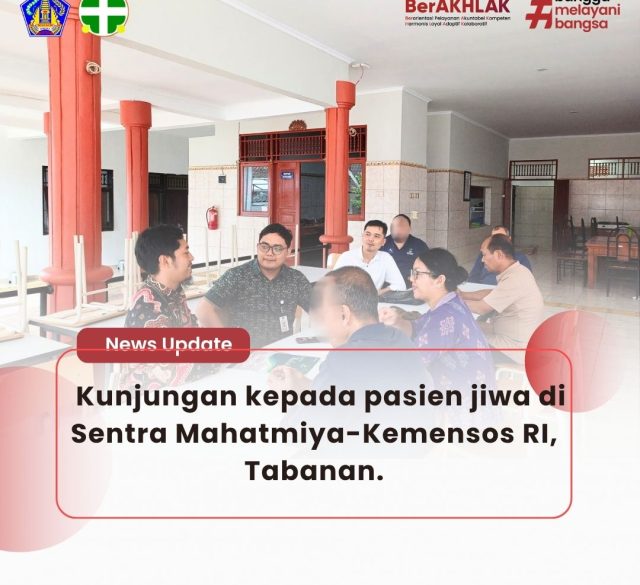 Pada hari Kamis, 3 Juli 2025, Tim PKRS dan Keswamas melaksanakan Kunjungan kepada pasien jiwa di Sentra Mahatmiya-Kemensos RI, Tabanan. Setelah melakukan pemeriksaan pada pasien dan memberikan edukasi kesehatan jiwa, tim juga melakukan pembinaan kepada Puskesmas Kediri 1 Kabupaten Tabanan terkait...
