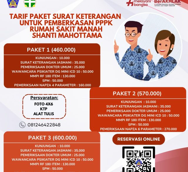 Halo Sahabat RSMSM! Rumah Sakit Manah Shanti Mahottama menyediakan paket surat keterangan kesehatan untuk keperluan pemberkasan PPPK. Pemeriksaan lengkap sesuai syarat PPPK Tarif terjangkau Langsung datang ke RSMSM atau hubungi kami untuk informasi lebih lanjut! CP : 081246422848 #RSMSM #Pemberka...