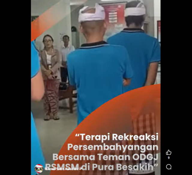 Instalasi Rehabiltasi Psikososial Rumah Sakit Manah Shanti Mahottama menyelenggarakan kegiatan terapi rekreasi persembahyangan bersama di Pura Agung Besakih, Desa Rendang, Karangasem. Kegiatan ini dibuka dan dilepas oleh Wakil Direktur Pelayanan RSMSM, didampingi oleh Kepala Bidang Keperawatan. S...
