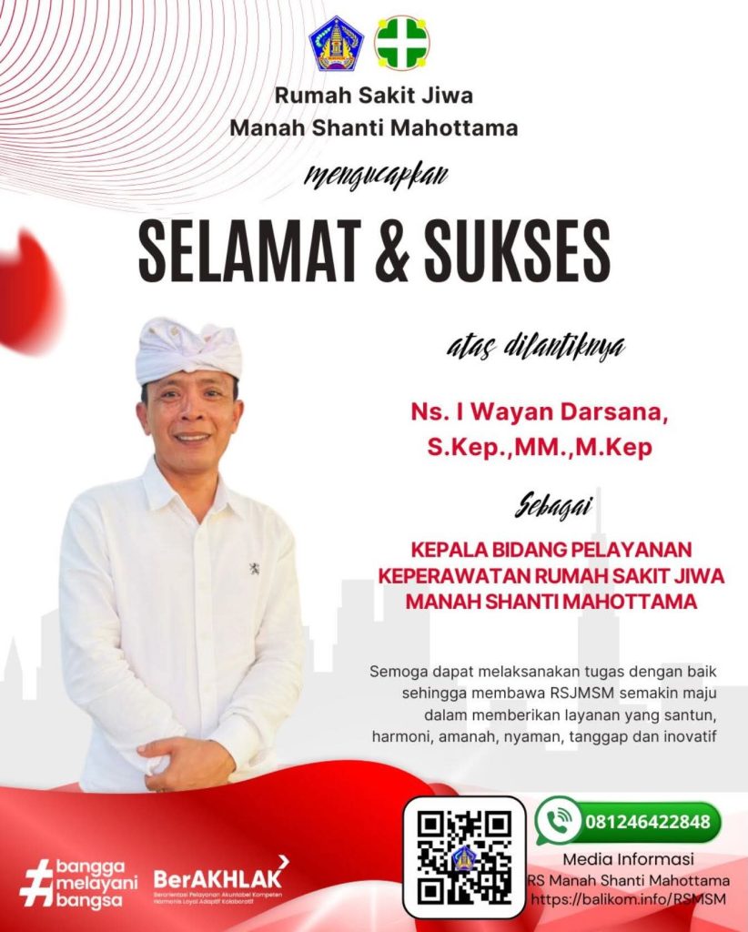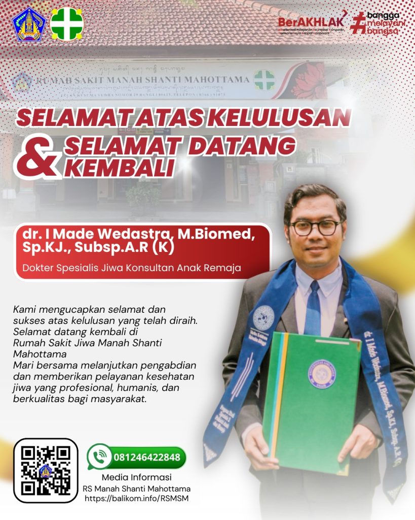 Selamat atas kelulusannya!Keluarga besar Rumah Sakit Jiwa Manah Shanti Mahottama mengucapkan selamat dan sukses atas pencapaian yang telah diraih. Perjalanan