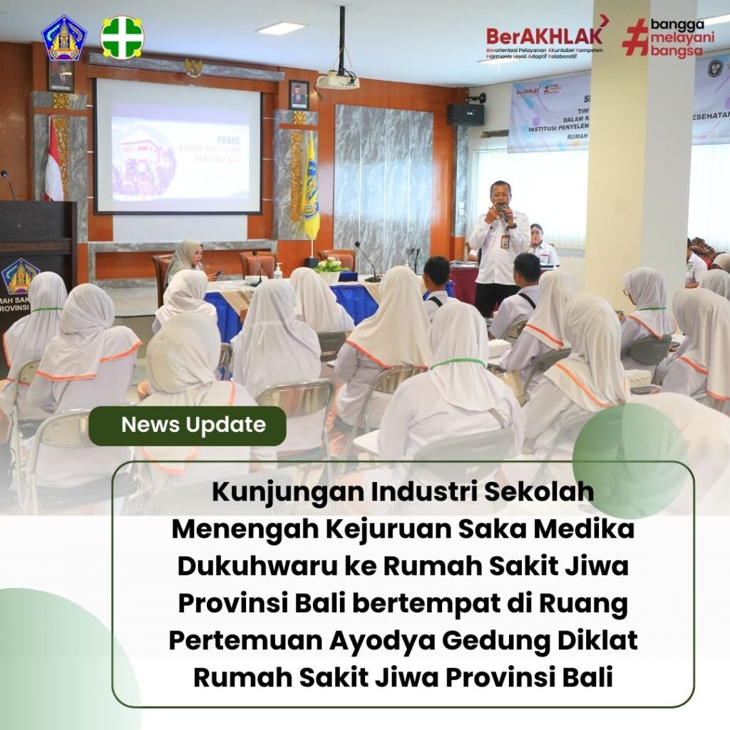Telah dilaksanakan kegiatan Kunjungan Industri Sekolah Menengah Kejuruan Saka Medika Dukuhwaru ke Rumah Sakit Jiwa Provinsi Bali. Acara Penerimaan yang
