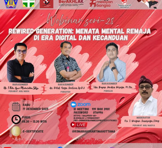 Webinar Seri–28“Rewired Generation: Menata Mental Remaja di Era Digital dan Kecanduan”Di era digital yang serba cepat, remaja dihadapkan pada tantangan besar terhadap kesehatan mental dan risiko kecanduan. Webinar ini mengajak kita memahami, menata, dan memperkuat kesehatan mental remaja se...