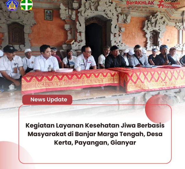 Kegiatan layanan kesehatan jiwa berbasis masyarakat di Banjar Marga Tengah, Desa Kerta, Payangan, Gianyar dilaksanakan sebagai upaya memperkuat sinergi antara fasilitas pelayanan kesehatan, tokoh masyarakat, dan perangkat desa. Pendekatan layanan tidak hanya berorientasi pada hospitality-based, t...