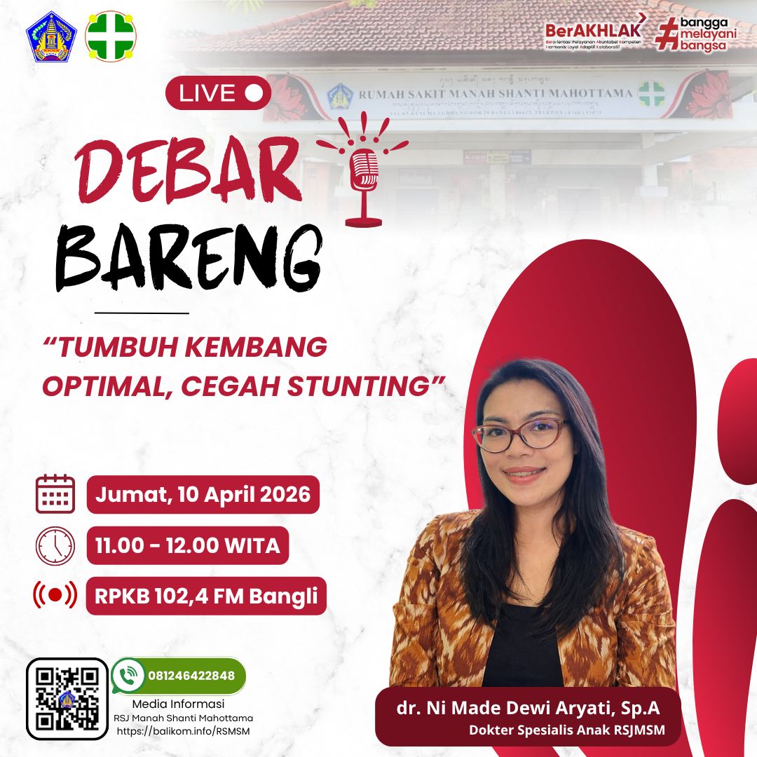 Bersama Rumah Sakit Manah Shanti Mahottama & RPKB Bangli, kita bahas hal penting untuk masa depan generasi kita: “Tumbuh Kembang Optimal, Cegah Stunting”.