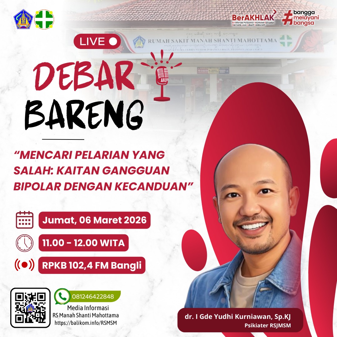 Yuk bergabung di DEBAR Bareng (Dengar Bareng-bareng) untuk memahami kaitan bipolar dan kecanduan agar kita bisa memberi dukungan yang tepat.
