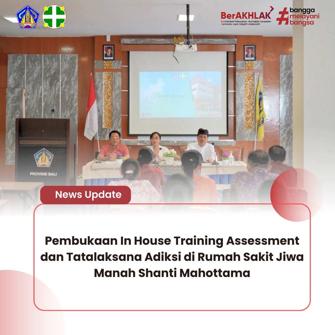Rumah Sakit Jiwa Manah Shanti Mahottama (RSJMSM) menyelenggarakan kegiatan In House Training Assessment dan Tatalaksana Adiksi sebagai bagian dari upaya berkelanjutan dalam meningkatkan kapasitas dan kompetensi sumber daya manusia di bidang pelayanan kesehatan jiwa, khususnya dalam penanganan kasus adiksi.