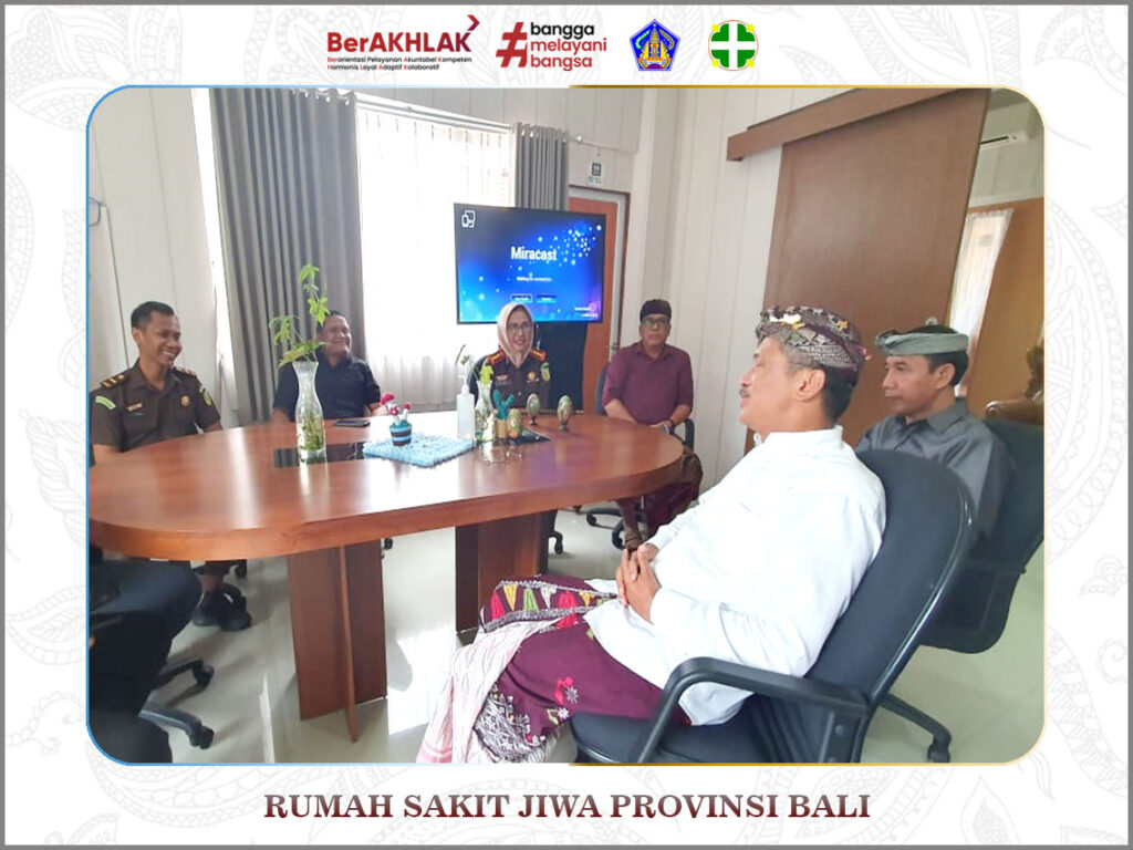 Kamis ,18 Januari 2024 Kunjungan Kajari Bangli ke Rumah Sakit Jiwa Provinsi Bali diterima oleh Plt Direktur RS Jiwa dr. I Dewa Gede Basudewa, Sp.KJ didampingi oleh Wadir ASD dan Kabid Keperawatan I Gusti Putu Gde Buana Parta, S.Kep, M.Kes dan Dewa Gede Anom, S.Kep.Ns.,M.A.P. Kunjungan kerja Kajari ini dalam rangka kerjasama pelaksanaan pemilu dengan keikutsertaan para ODGJ yang akan menjadi Pemilih di Pemilu 2024.