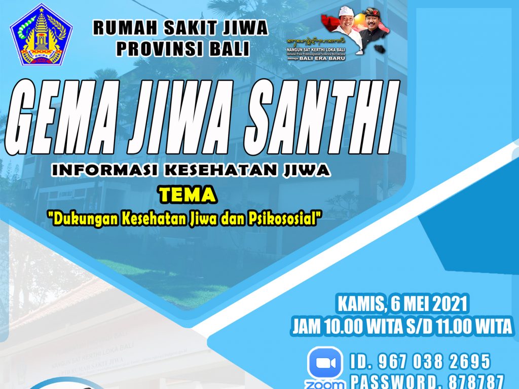 PENGUMUMAN Gema Jiwa Santhi Gema Jiwa Santhi Tema : Dukungan Kesehatan Jiwa dan Psikososial Kamis, 6 Mei 2021 https://us02web.zoom.us/j/9670382695...Meeting ID: 967 038 2695 Passcode: Kesehatan para lansia adalah kesehatan kita juga Serangkaian Hari Raya Kuningan Gema Jiwa Santhi Gema Jiwa Santhi Tema : Kartini di Era Milenial Kamis, 22 April 2021 Meeting ID: 967 038 2695 Passcode: 878787 Rahajeng Rahina Galungan Lan Kuningan Selamat Menyambut Hari Raya Galungan dan Kuningan Selamat Menyambut Bulan Suci Ramadhan Gema Jiwa Santhi Serangkaian Hari Wafatnya Yesus Kristus Gema Jiwa Santhi « Previous 1 … 25 26 27 28 29 … 36 Next »