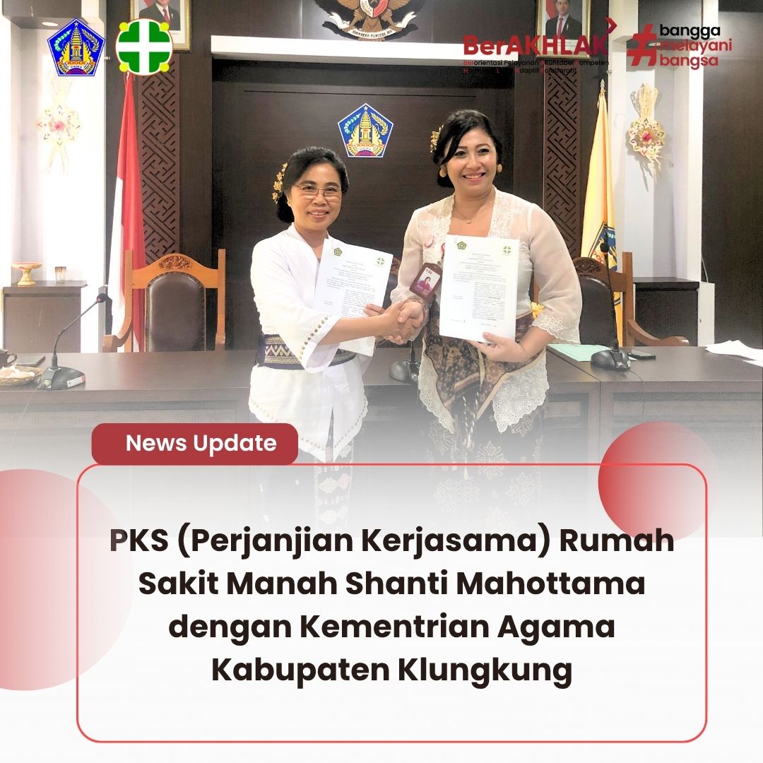 Pada hari Senin 02 Juni 2025 telah dilaksanakan PKS(Perjanjian Kerjasama) Rumah Sakit Manah Shanti Mahottama dengan Kementrian Agama Kabupaten Klungkung. PKS ini bertujuan membangun kerjasama dan sinergi dalam pencegahan, pelayanan, sosialisasi, dan pengawasan terhadap kesehatan jiwa masyarakat. Melalui kerjasama lintas sektor, RSMSM berharap masyarakat luas lebih memahami pencegahan dan pelayanan kesehatan jiwa, serta pendapatkan pelayanan yang cepat dan tepat. Demi mewujudkan komitmen masyarakat yang sehat secara mental dan spiritual.