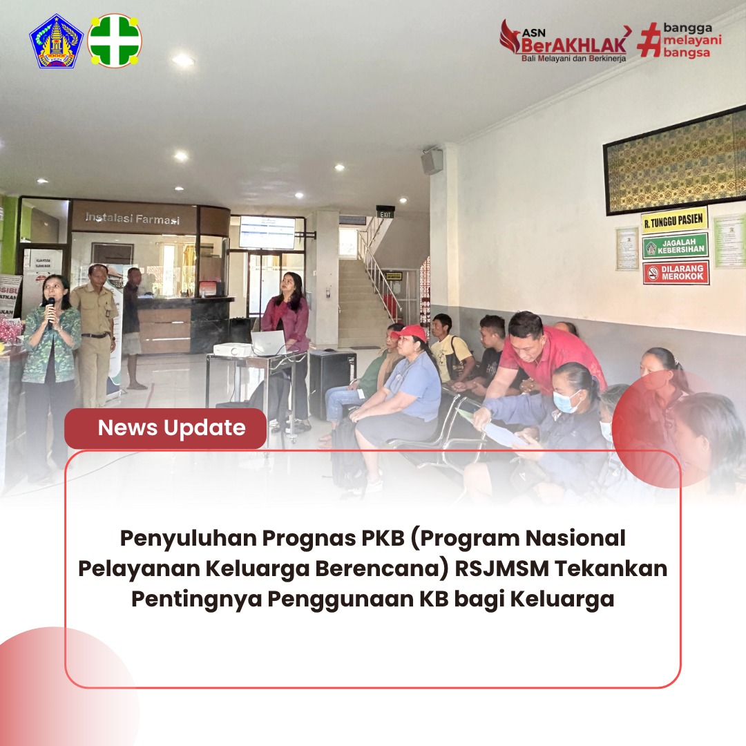 Program Nasional Pelayanan Keluarga Berencana (Prognas PKB) Rumah Sakit Jiwa Manah Shanti Mahottama (RSJMSM) melaksanakan kegiatan penyuluhan mengenai pentingnya penggunaan Keluarga Berencana (KB) kepada pasien dan keluarga pasien di ruang tunggu RSJMSM.