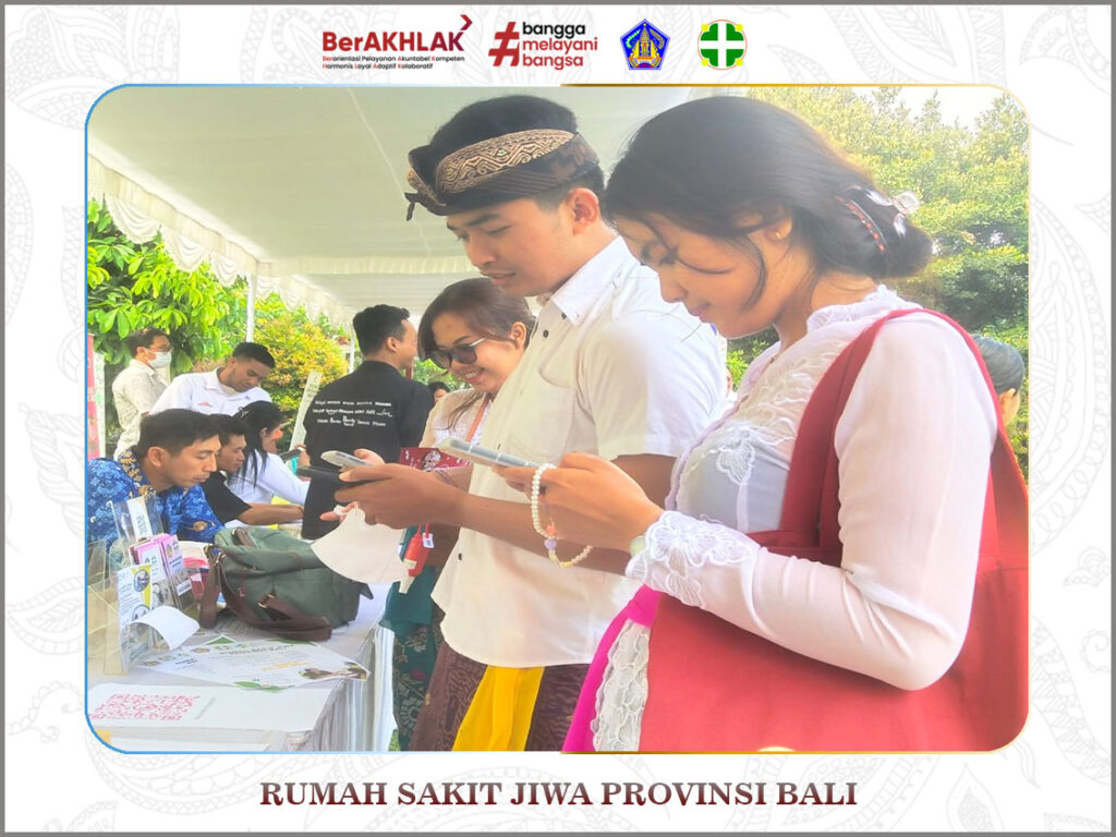 Pada puncak peringatan Hari Kesehatan Nasional yang ke-59 dilakukan upacara di halaman Kantor Dinas Kesehatan Provinsi Bali yang dipimpin oleh Kepala Dinas Kesehatan Prov Bali Dr. dr. I Nyoman Gede Anom, M.Kes dan Rumah Sakit Jiwa Provinsi Bali melalui perwakilannya turut hadir dalam apel tersebut. Setelah pelaksanaan apel dilanjutkan dengan menyaksikan berbagai macam pameran yang diikuti oleh Rumah Sakit Provinsi Bali dan UPTD yang bernaung dibawah Pemprov Bali. Dalam kesempatan tersebut, RS Jiwa Prov. Bali memberikan pelayanan berupa skrining dan konseling kesehatan jiwa serta deteksi dini tumbuh kembang anak dan tes kecerdasan khusus anak umur 5-7 tahun. Untuk menambah kemeriahan acara tersebut, RSJ Prov. Bali juga mempersembahkan kesenian tradisional Bondres yang merupakan kolaborasi kreatifitas seni musik dan tari dengan disisipi penyampaian informasi kesehatan jiwa.