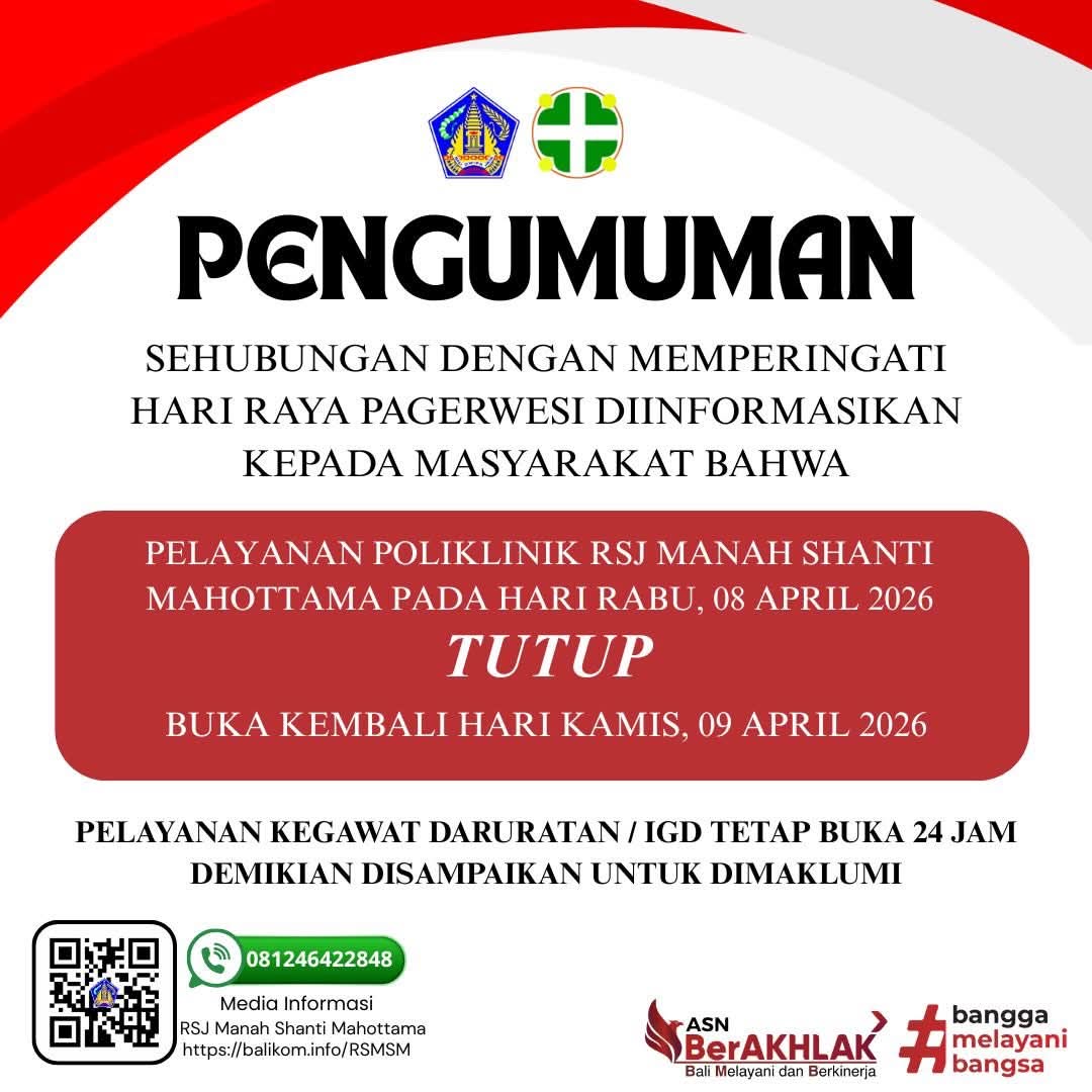 Pelayanan Poliklinik RSJ Manah Shanti Mahottama pada Hari Rabu, 08 April 2026