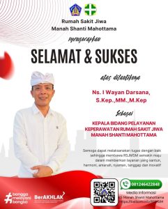 Selamat dan sukses atas dilantiknya Ns. I Wayan Darsana, S.Kep., MM., M.Kep sebagai Kepala Bidang Pelayanan Keperawatan RSJ Manah Shanti Mahottama.