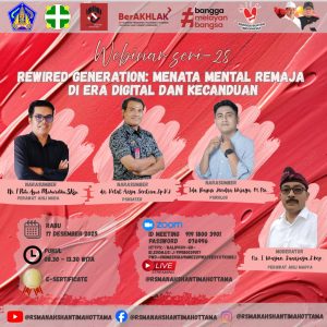 Di era digital yang serba cepat, remaja dihadapkan pada tantangan besar terhadap kesehatan mental dan risiko kecanduan. Webinar ini mengajak kita memahami, menata, dan memperkuat kesehatan mental remaja secara bijak dan berkelanjutan.